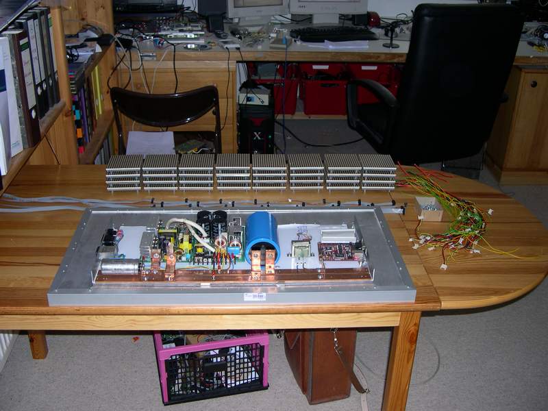 Das zweite Lämproblem habe ich nach Matthias Tips durch eine Spule in der Zuleitung der 5V Versorgung erreicht. Ein fettes 10mm Kabel ein paarmal aufgewickelt in Verbindung mit einem 100.000uF Elko auf der Stromschiene hat geholfen. Nun ist das Panel praktisch unhörbar.