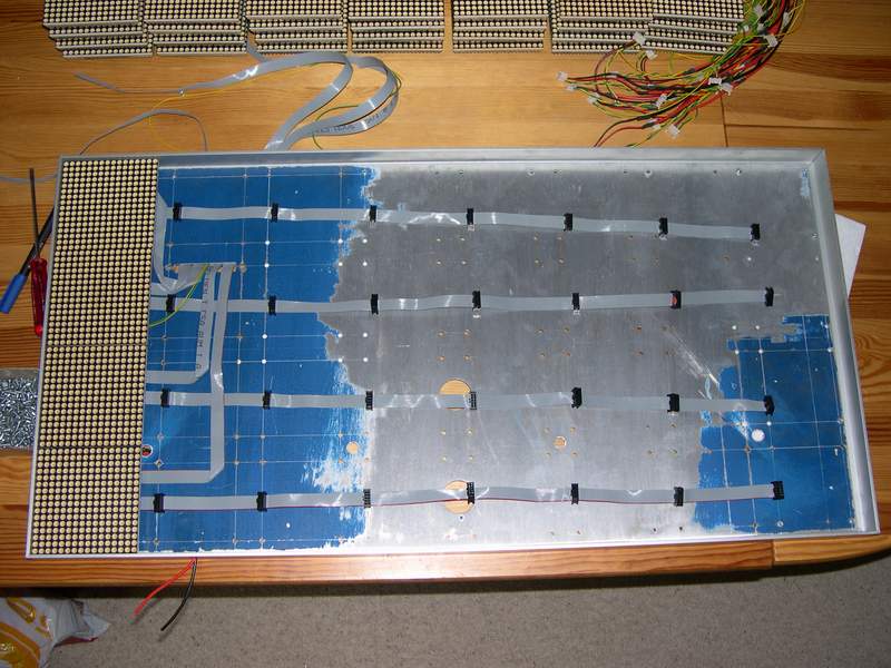Die Wärmeentwicklung der LEDs könnte auch ein Problem werden. Wenn ziemlich viele LEDs an sind wird der Alurahmen schon recht heiß.