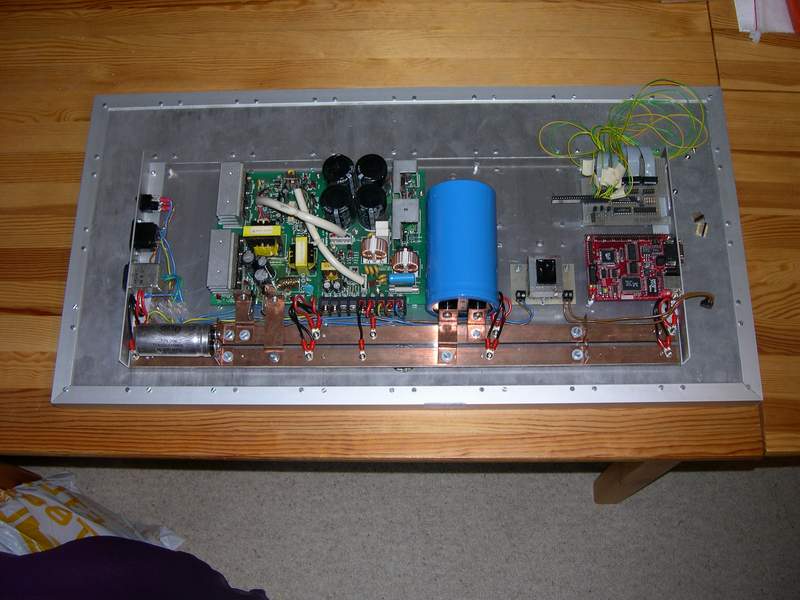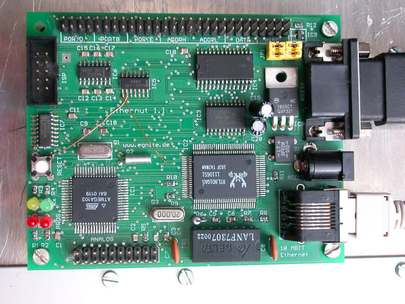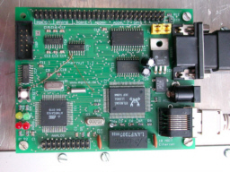 Als Steuerung dient ein kleiner Singleboardcomputer namens Ethernut. Cooles Teil: ATmega128, max.16MHz, 32kB RAM, Ethernet onboard, serielle Schnittstelle, diverse Digital- und Analog IO Pins, sowie ein recht ausgereiftes Betriebssystem, das man gut in C Programmieren kann (AVRGCC).