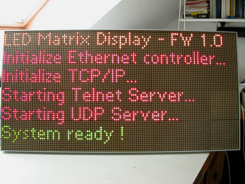 Das Panel wird per Ethernet angesteuert. Entweder man loggt sich per Telnet ein und gibt einfache Befehle ein (LINE, PRINT, CIRCLE, ...) oder man schickt dem Panel ein Abbild der Bildschirmbitmap als UDP Paket.