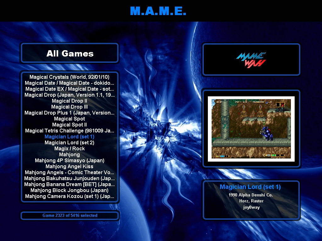 Als PC kam ein AMD Athlon XP 2600 mit Windows XP zum Einsatz, EBay war mein Freund. Da MAME ein Kommandozeilenprogramm ist fehlt nun noch eine hübsche Oberfläche mit der man das gewünschte Spiel auswählen kann. Ich habe dafür Mamewah benutzt. Etwas kompliziert zu konfigurieren, aber recht funktionell. Lest unbedingt im dortigen Forum nach, spart eine Menge Frust und Zeit.